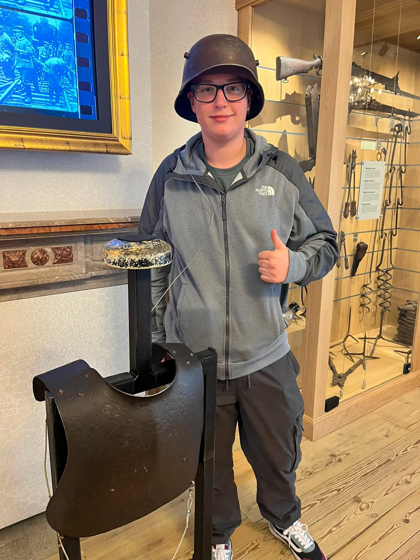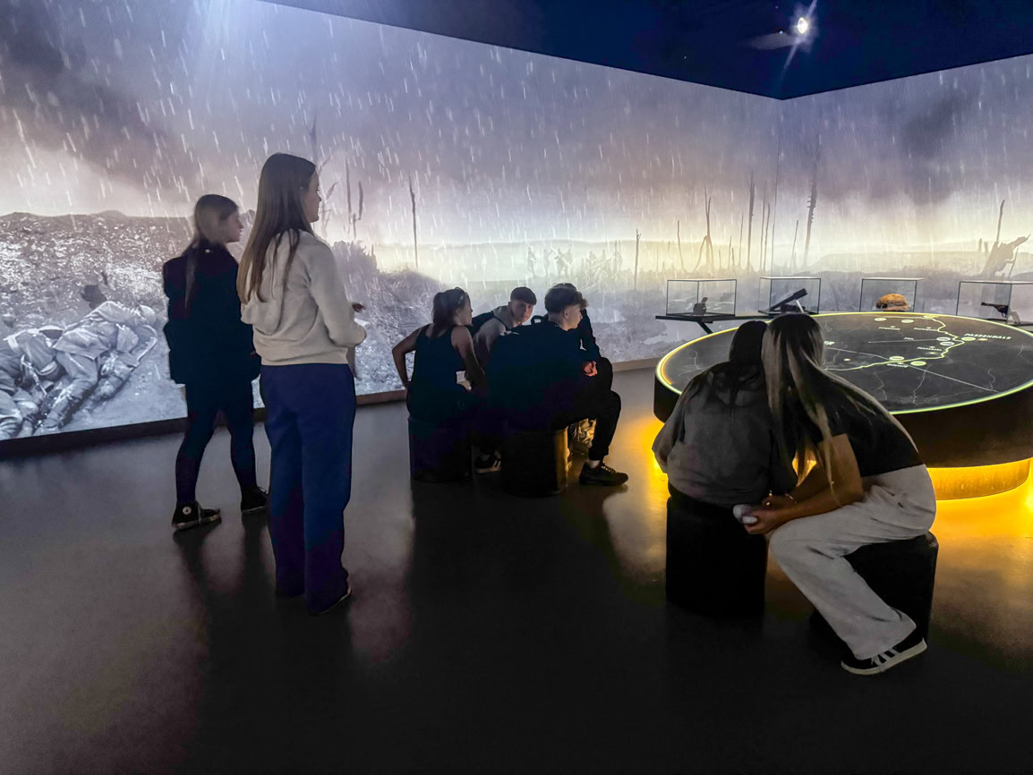 The adventure began with an early 3.30 am start, with the group finally arriving in Belgium around 1 pm. Their first stop was the Passchendaele 1917 Museum, where students engaged with a variety of artefacts before experiencing a chilling reconstruction of a WWI trench.