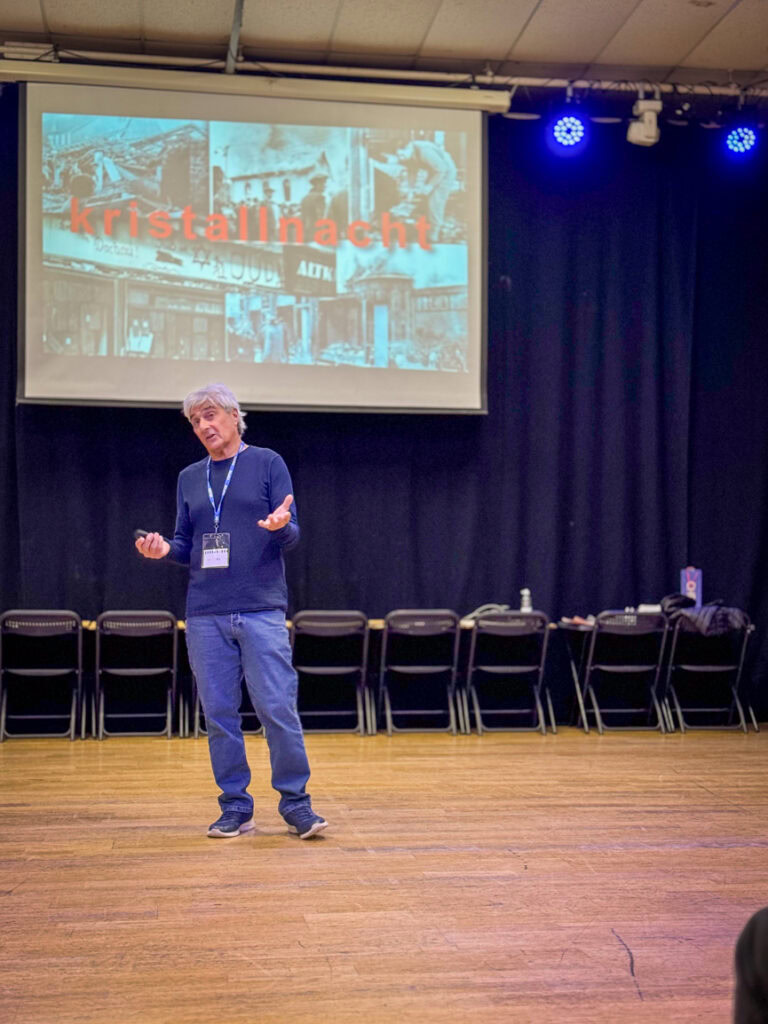 Mr Bibring told the students about how his father, Harry, and his family faced discrimination and prejudice in Vienna, Austria once Hitler became Chancellor in Germany in the 1930s, including being forced to leave the grammar school that he had worked so hard to get into. As the war progressed, Harry (aged just 13) and his sister were sent to England on the Kindertransport, as their parents believed it was unsafe for the children in Vienna and were sponsored by a family in London. Harry and his sister never saw their parents again and they later found out that they had died, his father had a heart attack on the way to a concentration camp and his mother died in the death camp, Sobibor.