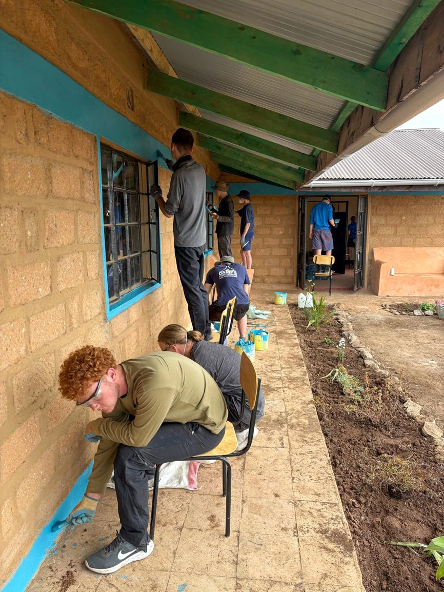 The expedition’s first stop, Rift Valley Adventure camp, provided stunning views of Mount Kenya and was the setting for a rewarding project at a local school. Students dug a flower bed border, painted the exterior, and added colourful murals to the interior walls.