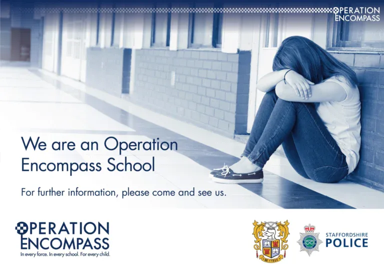 Operation Encompass is a crucial communication link that operates between our school’s Designated Safeguarding Leads (DSLs) and Staffordshire Police. It guarantees that when a child has been present during an incident of domestic abuse reported to the police, we receive a confidential notification before the start of the next school day.